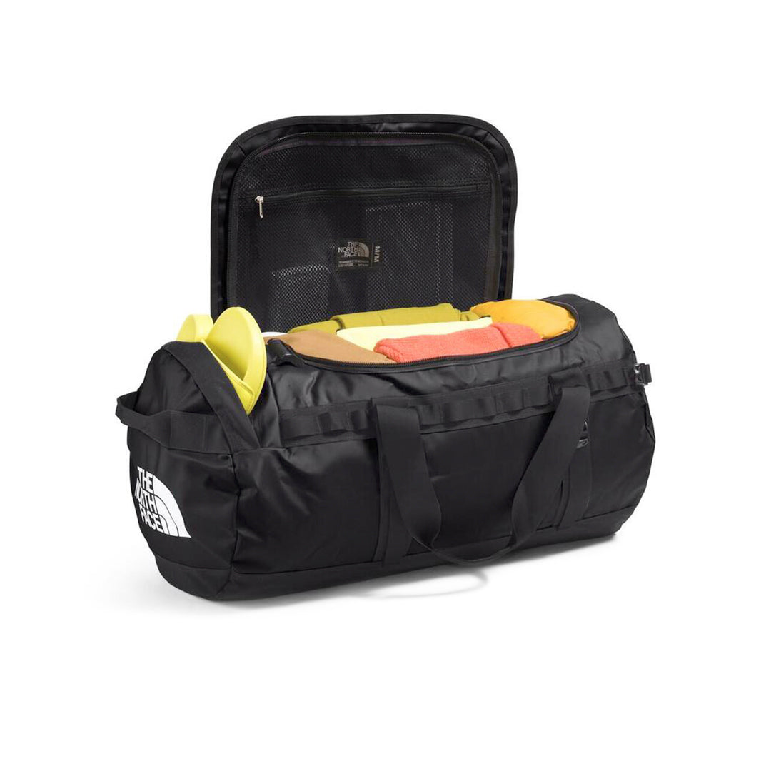 La Base Camp Duffel en talla M es todo un icono, ya que se trata de una pieza de equipo en la que aventureros y viajeros de todo el mundo han confiado para llevar en sus viajes por el Himalaya o por la ciudad. También es muy práctica, gracias a los numerosos detalles de diseño con los que cuenta y que la convierten en la mejor amiga de un explorador. Se abre fácilmente para que puedas ver lo que llevas en el interior, que cuenta con una sorprendente capacidad de 71 litros y con un tamaño de 35.5 cm x 64.5 cm x 35.5 cm. Tiene un bolsillo con cierre en uno de los extremos para que puedas llevar la ropa mojada o tus tenis sucios por separado, sin tener que ocupar espacio en el compartimento interior, que, además, cuenta con un bolsillo de malla para ofrecer aún más organización.